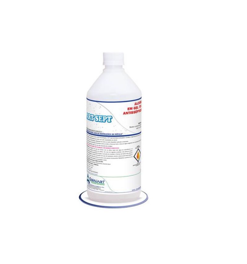 Álcool em gel para mãos com uma concentração de 70% p/p em álcool etílico, composto por uma associação do bactericida Triclosan com um álcool especial de ação germicida.