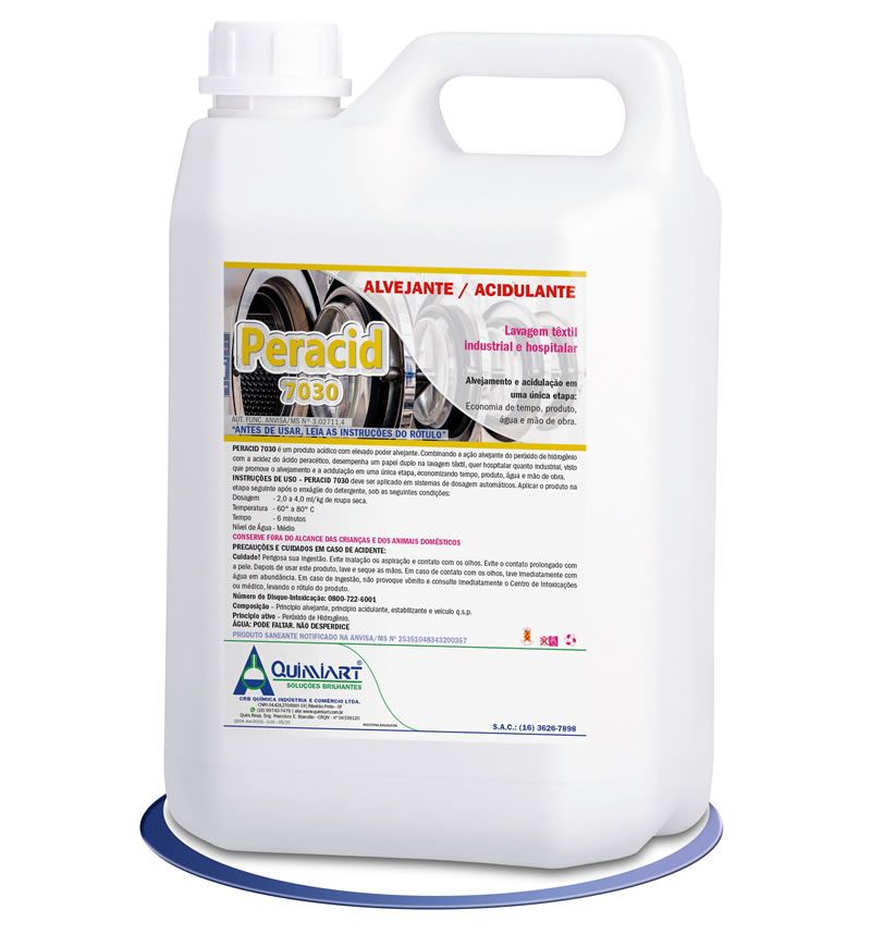 Combinando a ação alvejante do peróxido de hidrogênio com a acidez do ácido peracético, desempenha um papel duplo na lavagem têxtil, quer industrial quanto hospitalar, visto que promove o alvejamento e a acidulação em uma única etapa, economizando tempo, produto, água e mão de obra.