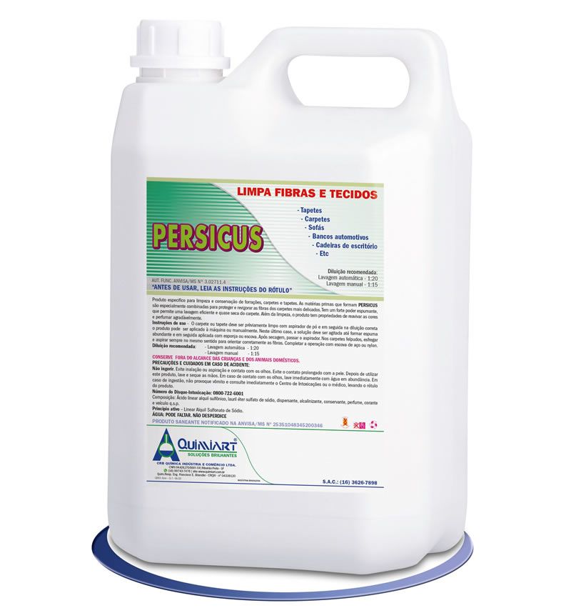 Tem um forte poder espumante, que permite uma lavagem eficiente e quase seca do carpete. Além da limpeza, o produto tem propriedades de reavivar as cores e perfumar agradavelmente.