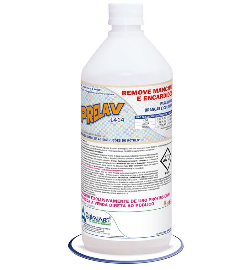 Indicado como ativador na linha de artigos têxteis de algodão, poliéster ou mistos, com sujidades diversas como nas lavanderias industriais, hospitalares, etc. PRELAV 1414 age conjuntamente com BLANCO BV, sobre as sujidades encontradas com frequência nos ambientes institucionais como suor, sangue, urina, fezes, medicamentos, etc.